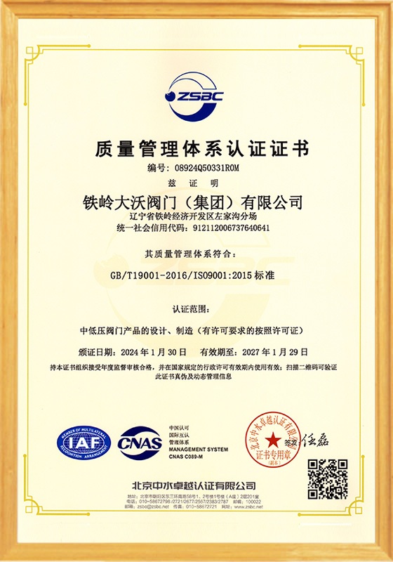 鐵嶺大沃閥門(集團)有限公司,是原鐵嶺閥門廠改制后,以原國有企業(yè)各領域的骨干精英為核心所組建的創(chuàng)新型企業(yè)。公司在傳承老“鐵閥”所積淀的“管理嚴格、質量第一”精神的同時,將“以客戶為中心,市場為導向,科技創(chuàng)新為支撐”作為發(fā)展理念;將“修為礪器,誠信匠心”作為核心價值觀。在近十年的發(fā)展歷程中,鐵嶺大沃人通過不懈地探索和創(chuàng)新,逐步形成了獨特的經(jīng)營模式及核心競爭力。成為遼寧省企業(yè)廳命名的省級創(chuàng)新型企業(yè);成為通過ISO 9001質量管理體系、ISO14001環(huán)境管理體系和ISO 18001職業(yè)健康安全管理體系認證,以及特種設備制造許可證認證......